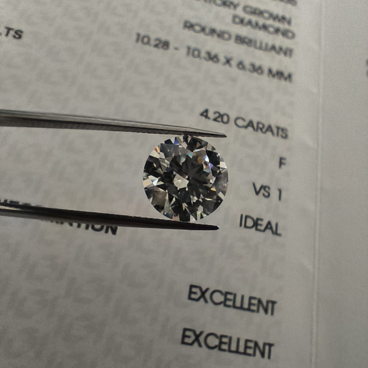 Diamant de synthèse Brillant de 4.20 carats F VS1 EX IGI