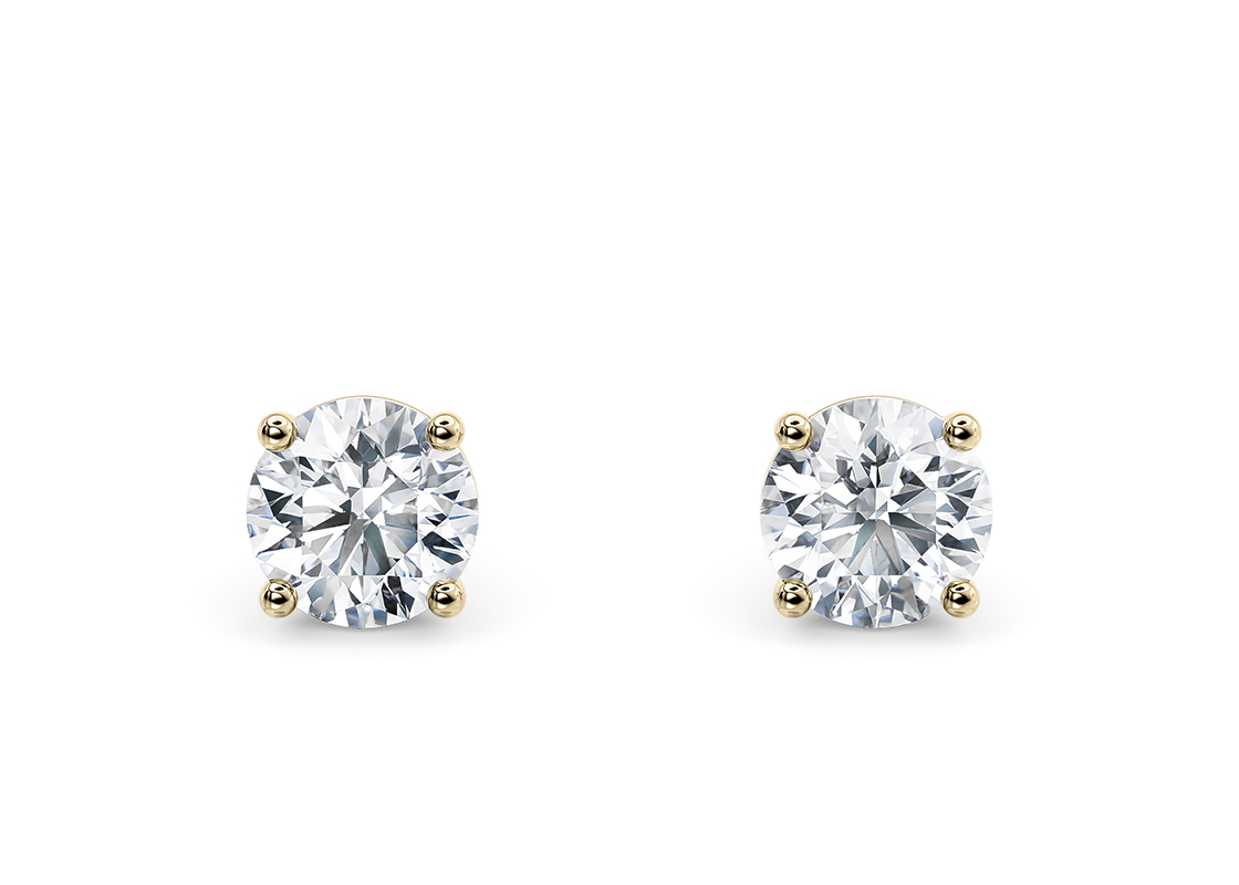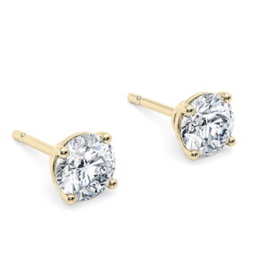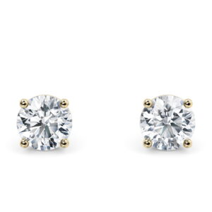 Paire de clous d’oreilles or jaune 18k avec 2 diamants de synthèse de 2.58 carats E-VVS2 ID-EX-EX IGI