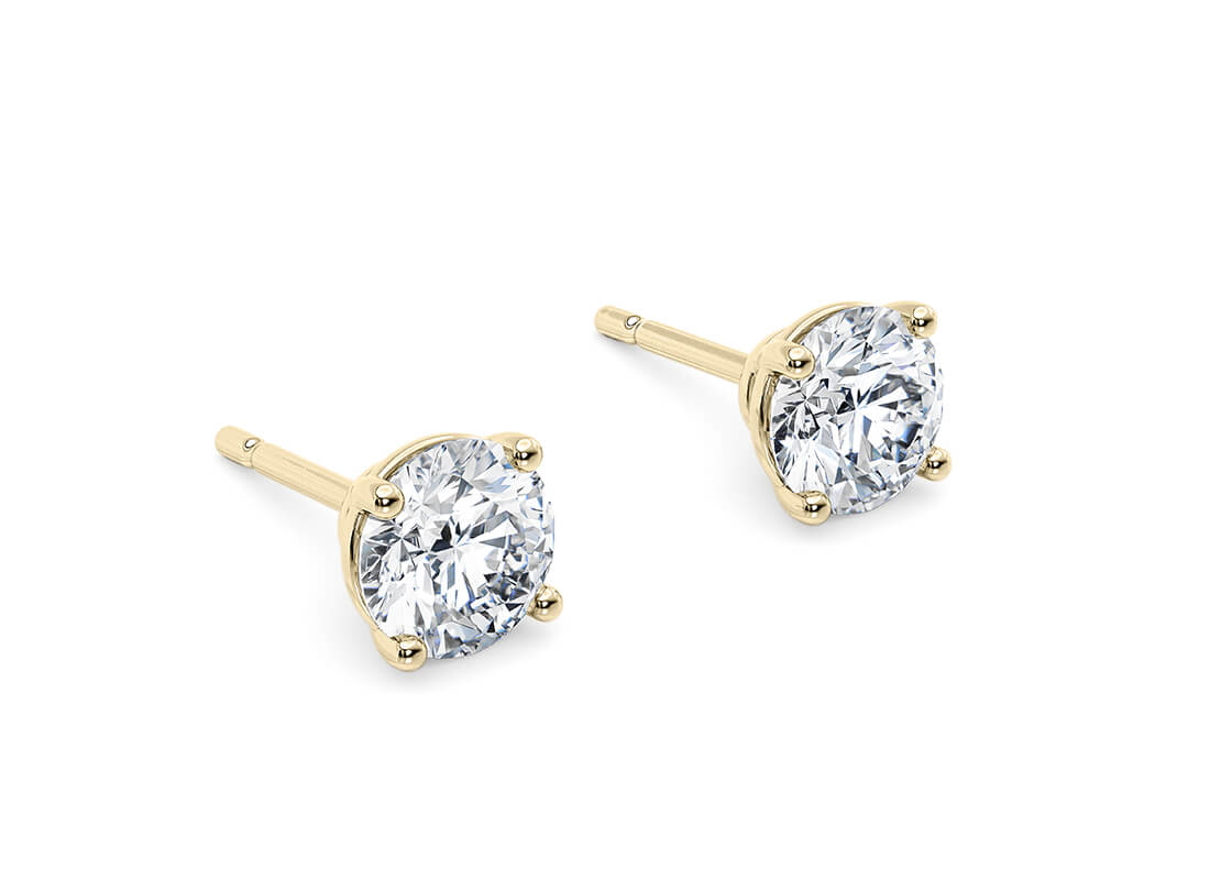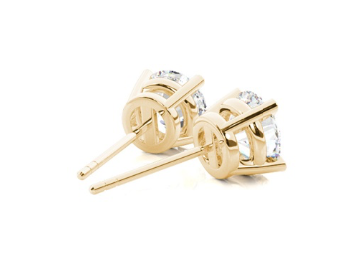 Paire de clous d’oreille en or jaune 18k, 4 griffes.