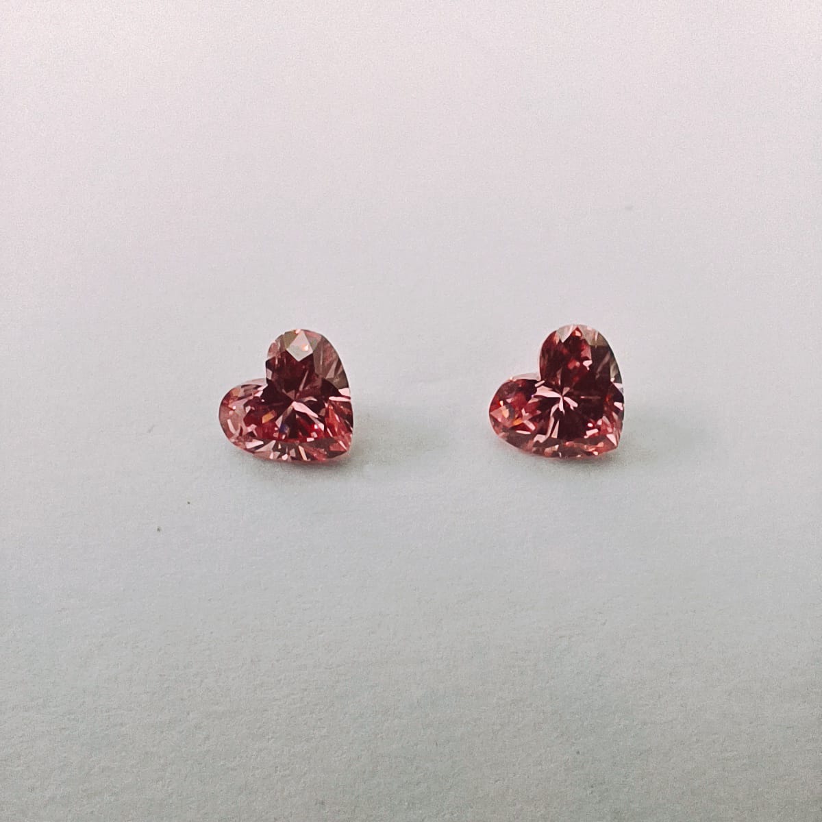 Paire de diamants cœurs de 0.99ct. & 0.98ct. Fancy Vivid Pink VS1 EX EX IGI