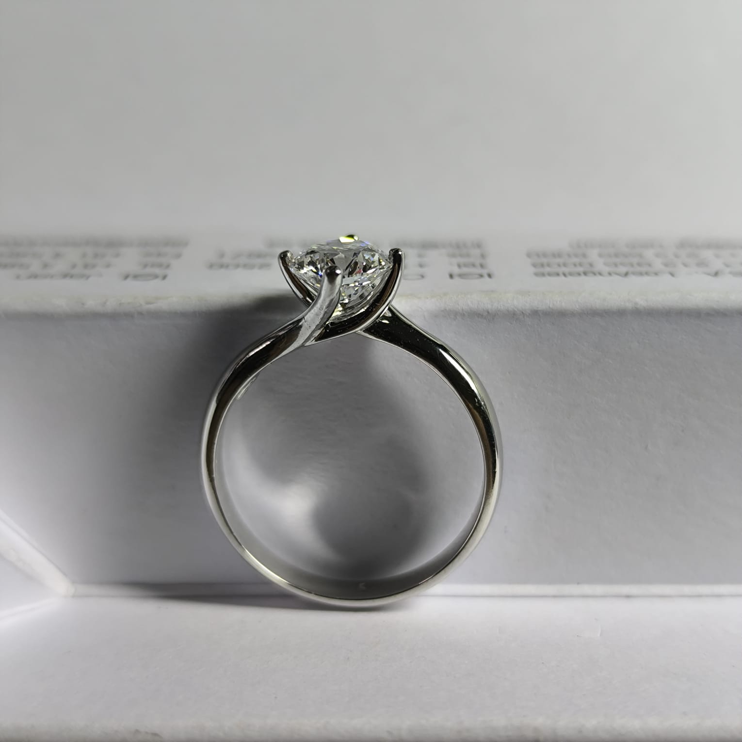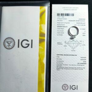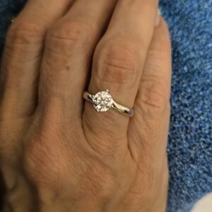 Solitaire en or blanc 18k avec diamant de synthèse de 1.07 carat D VVS2